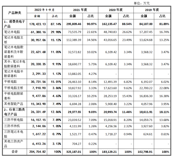 目前,公司消費類電子產(chǎn)品已經(jīng)形成了平板電腦、筆記本電腦、VR/AR和其他智能硬件等產(chǎn)品線;行業(yè)三防類電子產(chǎn)品形成了三防加固筆記本電腦、三防加固平板電腦、手持終端等產(chǎn)品線;芯片和系統(tǒng)平臺涵蓋“X86架構(gòu)(Intel或AMD)+Windows系統(tǒng)(Microsoft)”“ARM架構(gòu)(MTK或Qualcomm)+Android系統(tǒng)(Google)”等。