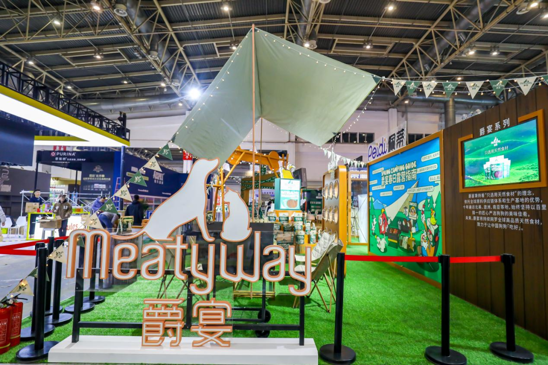 爵宴品牌展區(qū)鋪上清新柔軟的草坪,走上前去仿佛置身大自然。展臺(tái)采用原木設(shè)計(jì)風(fēng)格,還別出心裁地搭起了帳篷,為人們駐足停留設(shè)置了休憩區(qū),場(chǎng)館內(nèi)即刻感受原野露營(yíng)、圍爐燒烤的戶外氛圍。這是首個(gè)將戶外露營(yíng)風(fēng)格應(yīng)用在室內(nèi)搭建的寵物展臺(tái),旨在callback【爵宴搖尾營(yíng)地】品牌活動(dòng)。該活動(dòng)已在杭州成功舉辦兩屆,如今搬到京寵展現(xiàn)場(chǎng),讓北京的朋友們開心過(guò)把癮!