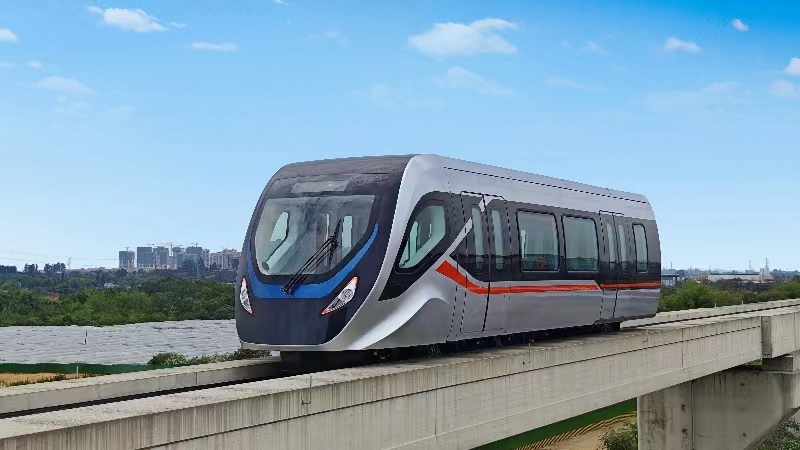 在試驗(yàn)線上行駛中的國產(chǎn)化內(nèi)嵌式中低速磁懸浮車輛/公司供圖