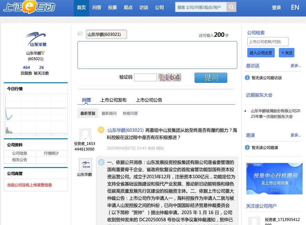 本報(bào)訊 (記者王僖)山東華鵬玻璃股份有限公司(以下簡稱“山東華鵬”)近日在上證e互動(dòng)平臺回應(yīng)投資者提問,就重組中山東發(fā)展投資控股集團(tuán)有限公司(以下簡稱“山發(fā)控股”)履約能力及山東??瓶毓捎邢薰荆ㄒ韵潞喎Q“海科控股”)推進(jìn)情況作出說明。