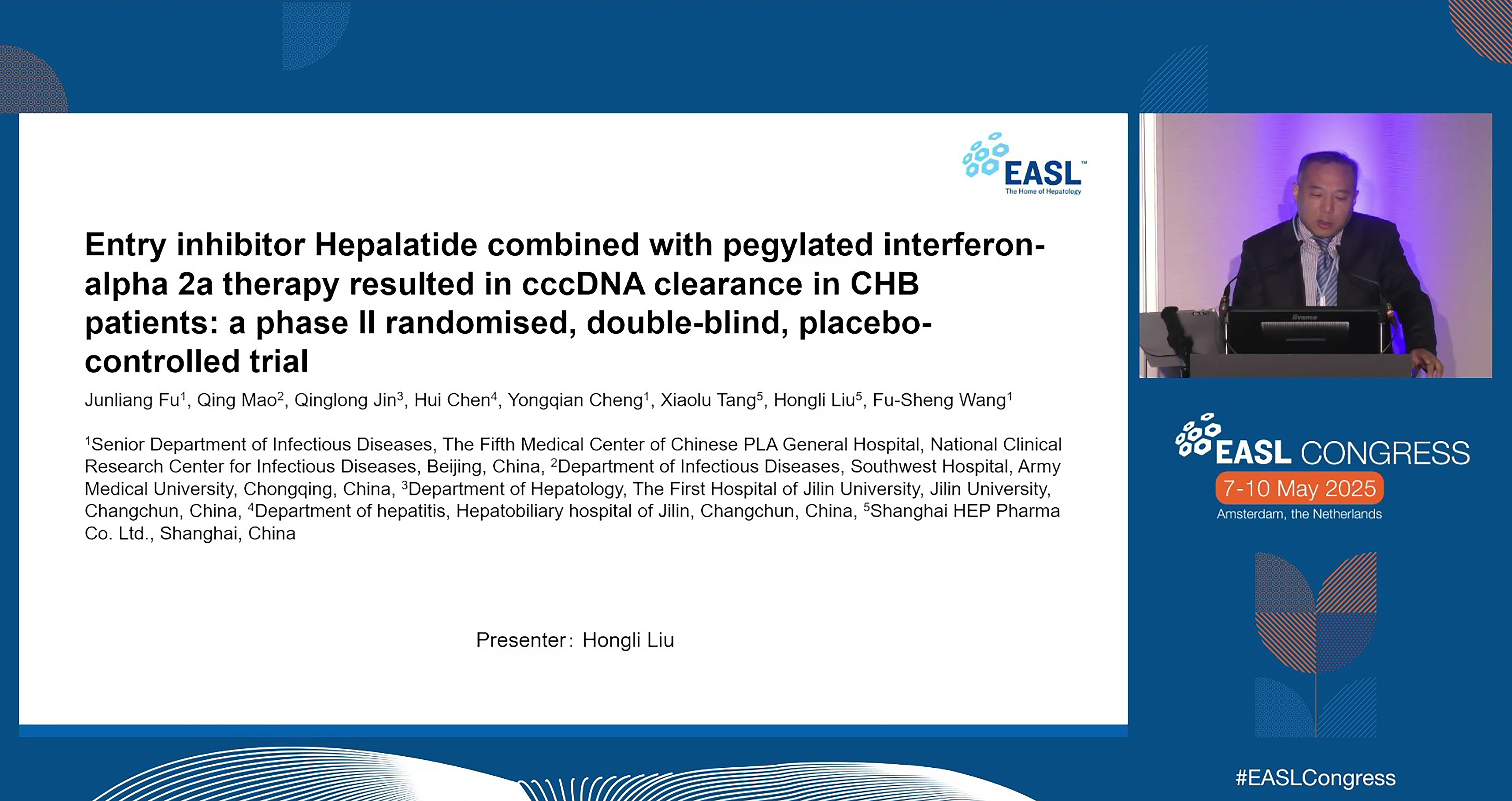 圖說:賀普藥業(yè)一類創(chuàng)新藥賀普拉肽聯(lián)合PEG干擾素治療慢性乙肝的二期臨床試驗(yàn)結(jié)果在2025年第60屆歐洲肝病學(xué)會(huì)年會(huì)進(jìn)行了口頭報(bào)告并公布(圖片來源:企業(yè)供圖)