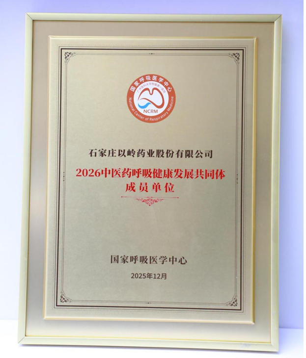 以嶺藥業(yè)獲授“中醫(yī)藥呼吸健康發(fā)展共同體”成員單位