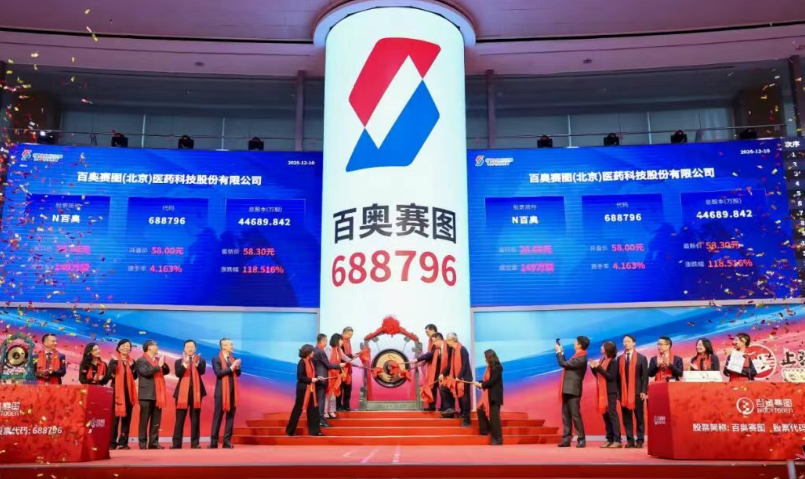 12月10日,百奧賽圖(北京)醫(yī)藥科技股份有限公司(以下簡(jiǎn)稱“百奧賽圖”)成功在上海證券交易所科創(chuàng)板掛牌上市。這是百奧賽圖繼2022年9月1日登陸香港聯(lián)合交易所(02315.HK)后,在深化資本市場(chǎng)布局、提升企業(yè)價(jià)值上邁出的關(guān)鍵一步,標(biāo)志著公司成功構(gòu)建“H+A”雙平臺(tái)上市格局。
