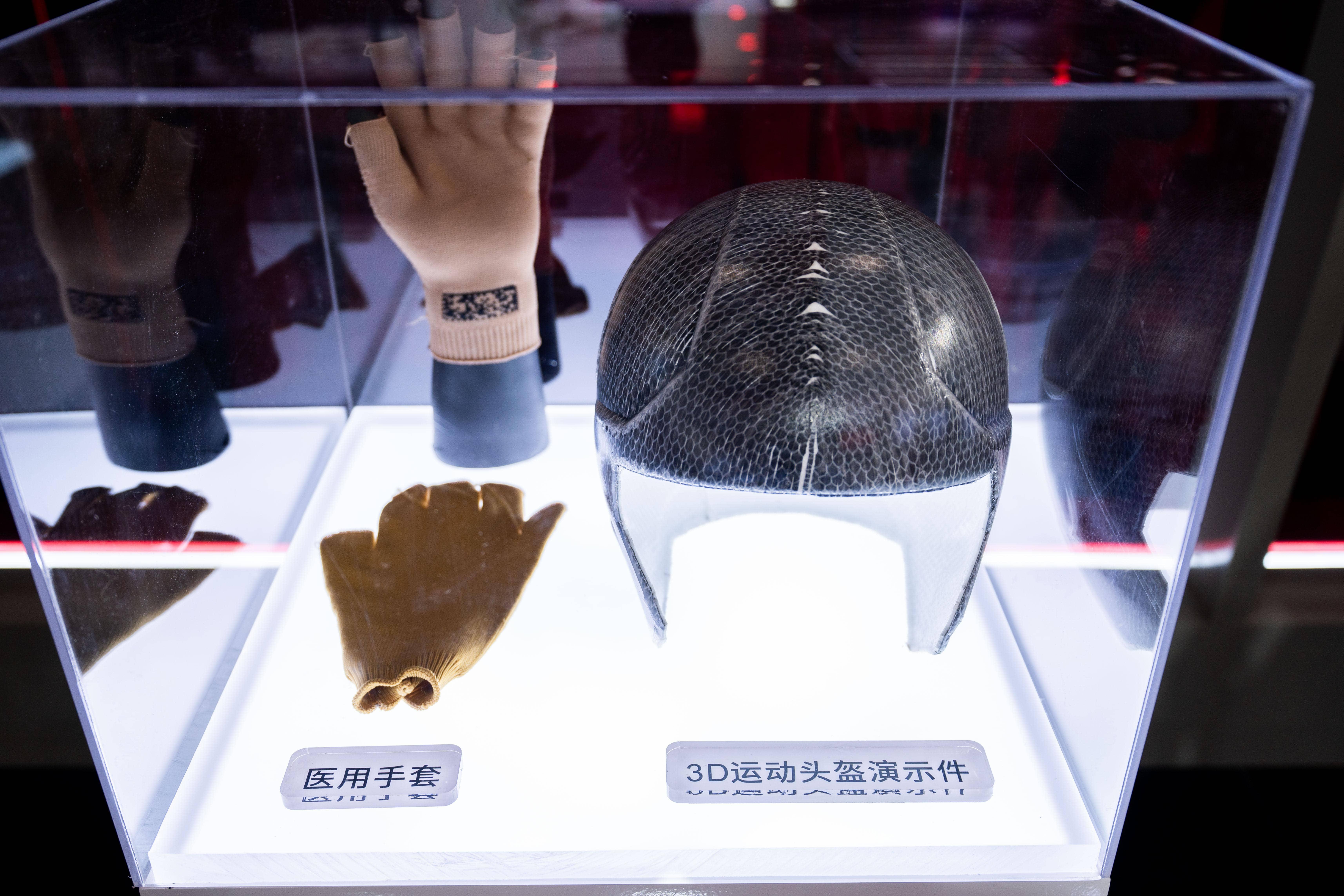 “編織無限可能創(chuàng)新針織區(qū)”是本次展出的核心亮點之一,展品從傳統(tǒng)服裝領域延伸至多個高技術含量的新應用場景,集中呈現(xiàn)了公司在針織技術跨界應用方面的前瞻布局。