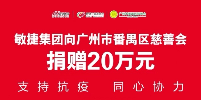 6月3日,敏捷集團迅速行動,決定向廣州市慈善會、廣州市番禺區(qū)慈善會累計捐資80萬元,主要用于采購防護服、護目鏡、一次性手套、口罩等短缺醫(yī)療物資及護欄、室內(nèi)隔離帶、等候椅等后勤保障物資,以及對一線醫(yī)護人員的支援和幫助,為奮戰(zhàn)在一線的各戰(zhàn)線工作人員加油助力。