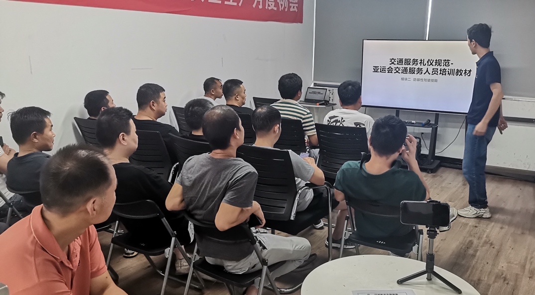 圖為免傭聯(lián)盟合作網(wǎng)約車平臺(tái)開(kāi)展“迎亞運(yùn)專項(xiàng)培訓(xùn)”企業(yè)/供圖