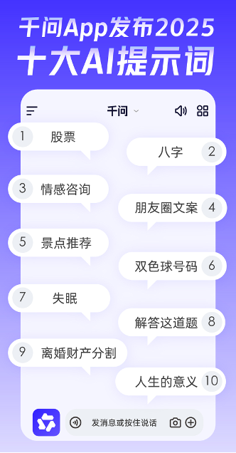 本報(bào)訊 (記者梁傲男)12月22日,千問(wèn)App發(fā)布“2025十大AI提示詞”榜單,揭示了2025年人們使用AI的十大高頻場(chǎng)景,“股票”高居首位,遠(yuǎn)超其他工具性、生活類或情感類話題。這一結(jié)果不僅折射出人們對(duì)資本市場(chǎng)的高度關(guān)注,也標(biāo)志著AI正深度融入個(gè)人的投資決策。