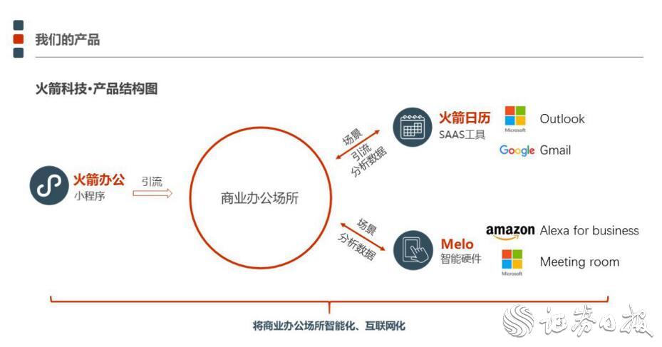 目前,火箭科技的產(chǎn)品矩陣包括依托微信小程序的靈活工位預(yù)訂平臺——火箭辦公、輕量化辦公工具——火箭日歷以及以Melo智能會議系統(tǒng)為代表的智能硬件與智慧化解決方案。