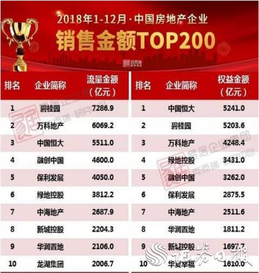 對比2018年全年TOP10榜單發(fā)現(xiàn),老牌前四甲中,碧桂園被萬科趕超,恒大維持第三,融創(chuàng)退居第六,相應(yīng)地,保利、中海排名趕超融創(chuàng),剩余的“老面孔”綠地、新城、華潤、龍湖中,新城跌出前十,由世茂房地產(chǎn)接替。