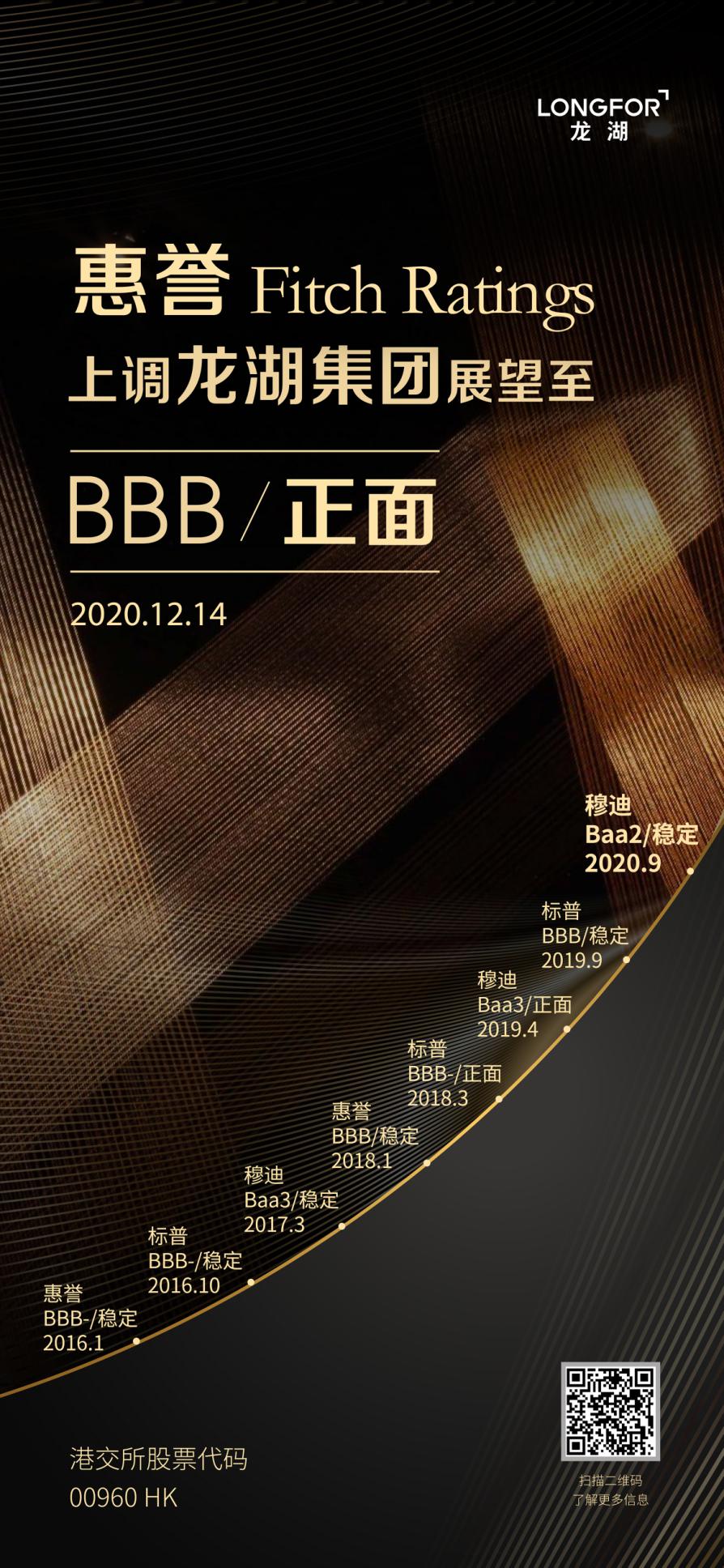12月14日,龍湖集團控股有限公司(港交所股份代號:960)宣布,國際權威信用評級機構惠譽(Fitch)已將龍湖展望調(diào)升至正面,發(fā)行人和高級無擔保債券評級維持BBB。龍湖亦成為2020年至今中國全投資級房企中唯一一家獲兩家國際機構調(diào)升評級/展望的企業(yè)。