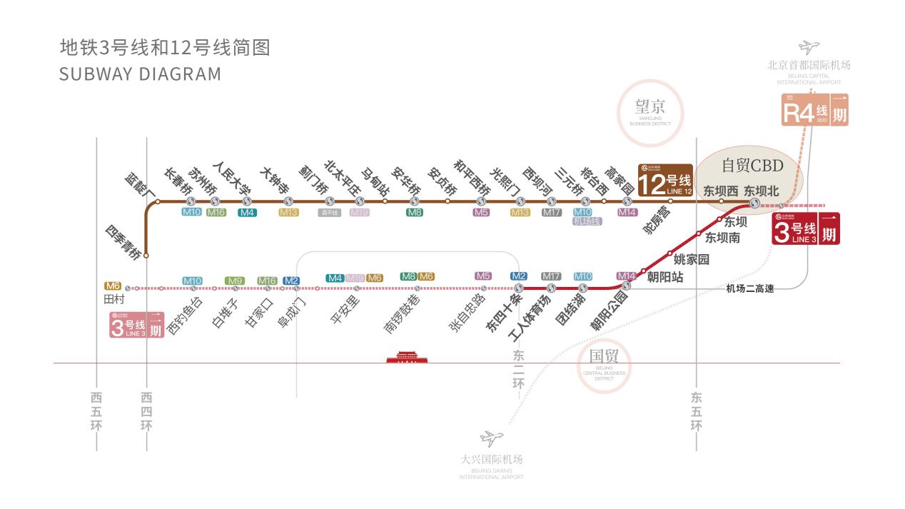 交通是東壩價(jià)值釋放的重要支點(diǎn)。隨著地鐵3號線一期和12號線的開通運(yùn)營,為該區(qū)域織密了城市級的軌道網(wǎng)絡(luò)。地鐵3號線貫通三里屯、工體,打通了北京最核心的商務(wù)與消費(fèi)圈;而12號線則貫穿海淀、西城、東城、朝陽四區(qū),構(gòu)建起從居住區(qū)通達(dá)核心區(qū)的快速軌道走廊。從北熙區(qū)出發(fā),8站可直達(dá)三里屯,4站直通三元橋,真正實(shí)現(xiàn)“地鐵上的生活圈”。而未來的R4快線則將連接首都機(jī)場與城市核心,串聯(lián)3號線與12號線,使東壩成為通達(dá)全城、鏈接國際的重要節(jié)點(diǎn)。這些軌道交通的相繼落地,將徹底打破東壩“交通孤島”的刻板印象,為區(qū)域發(fā)展注入強(qiáng)勁動能。