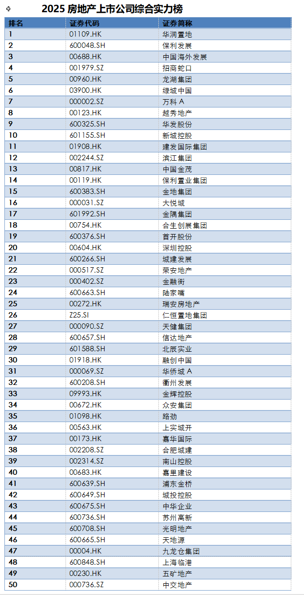 (2025年房地產(chǎn)上市公司綜合實力50強 主辦方供圖)