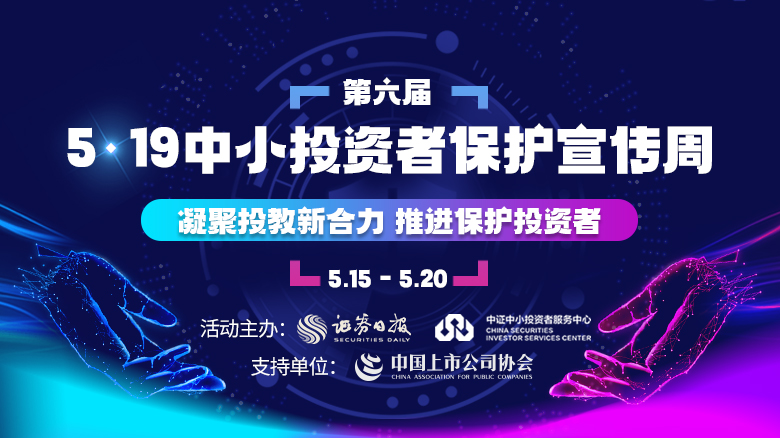 5月15日,由《證券日?qǐng)?bào)》社與中證中小投資者服務(wù)中心發(fā)起并主辦的第六屆"5·19中小投資者保護(hù)宣傳周"活動(dòng)將正式啟動(dòng)。