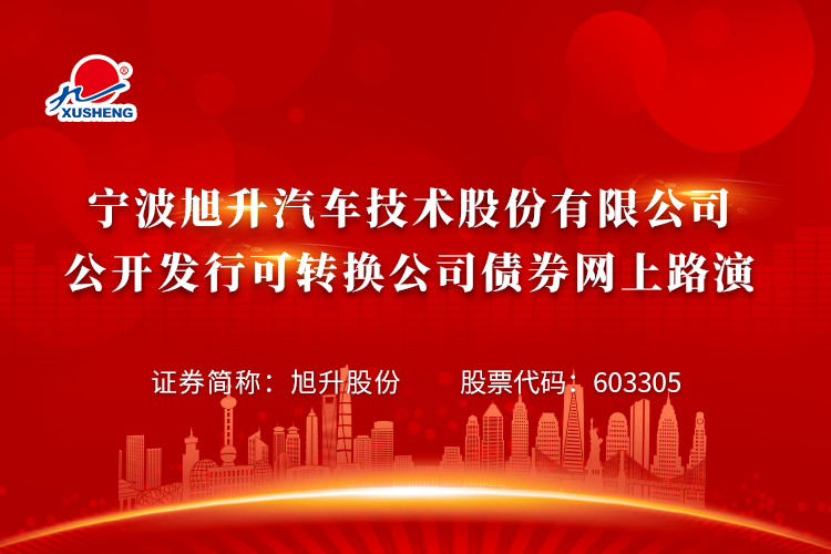 寧波旭升汽車技術(shù)股份有限公司公開發(fā)行可轉(zhuǎn)換公司債券網(wǎng)上路演將于2021年12月9日(星期四) 15:00——17:00在本網(wǎng)舉行。網(wǎng)上提問已經(jīng)開通,歡迎投資者積極參與。[詳細(xì)]