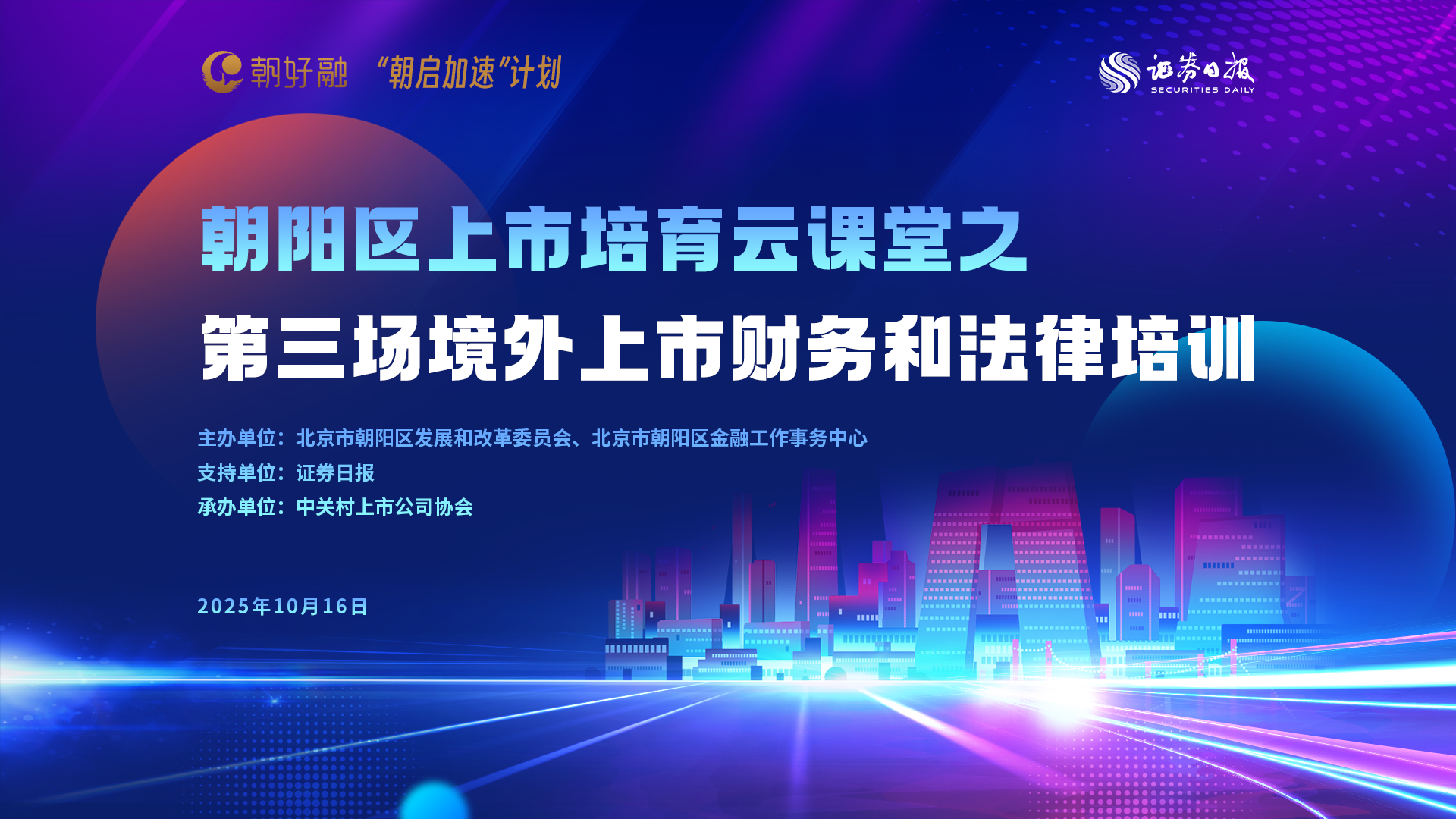 歡迎光臨證券日?qǐng)?bào)網(wǎng)。朝陽區(qū)上市培育云課堂之第三場境外上市財(cái)務(wù)和法律培訓(xùn)將于2025年10月16日(星期四)14:30--17:30舉行。[詳細(xì)]