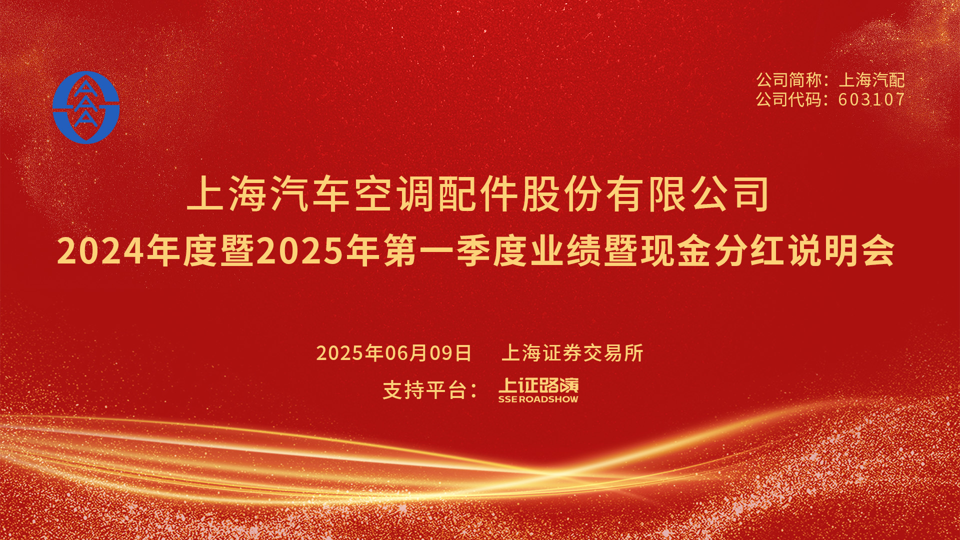 歡迎光臨證券日報(bào)網(wǎng)。上海汽車空調(diào)配件股份有限公司2024年度暨2025年第一季度業(yè)績暨現(xiàn)金分紅說明會將于2025-06-09(星期一)13:00 ~ 14:45舉行。[詳細(xì)]