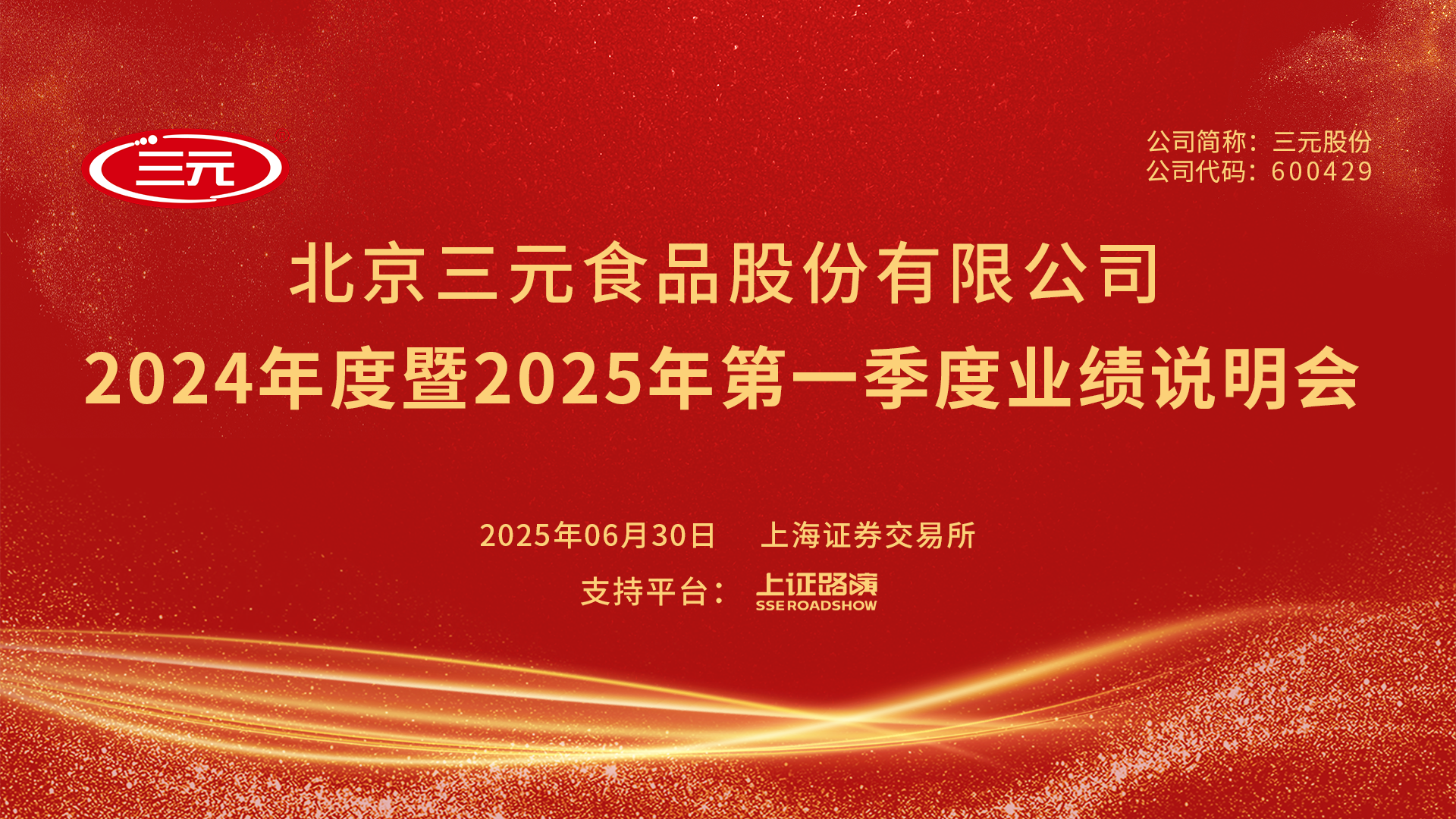 歡迎光臨證券日報(bào)網(wǎng)。北京三元食品股份有限公司2024年度暨2025年第一季度業(yè)績說明會將于2025年06月30日 (星期一)13:00-14:00舉行。[詳細(xì)]