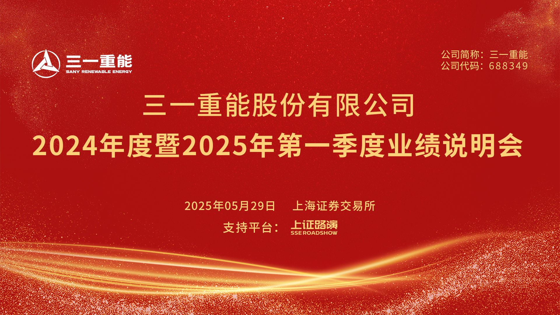 歡迎光臨證券日報網(wǎng)。三一重能股份有限公司2024年度暨2025年第一季度業(yè)績說明會將于2025-05-29(星期四)10:00 ~ 11:30舉行。[詳細(xì)]