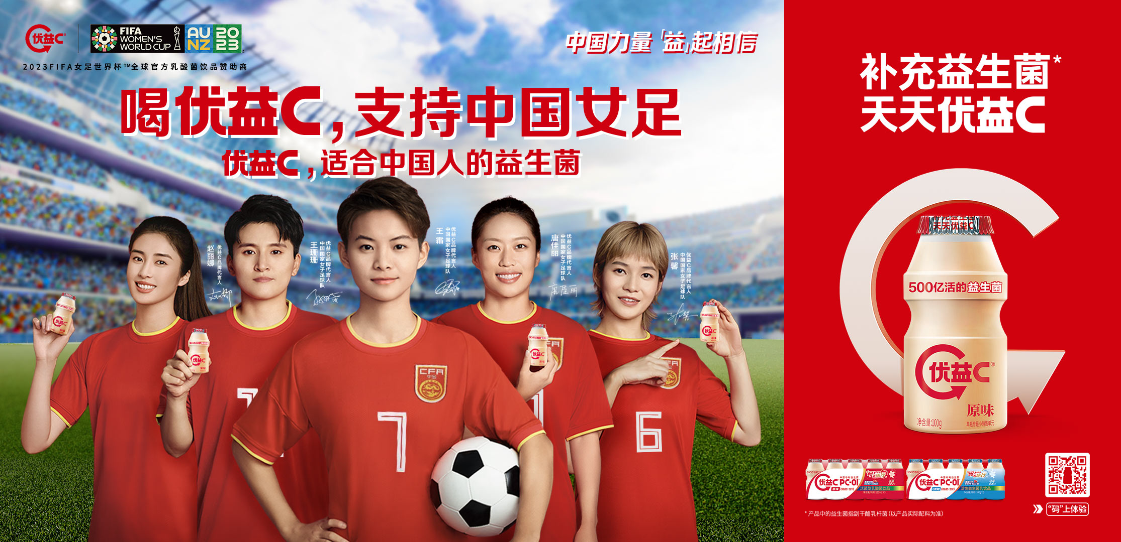 有人說(shuō),你永遠(yuǎn)可以相信中國(guó)女足。32年來(lái),中國(guó)女足歷經(jīng)七屆世界杯,既有創(chuàng)造歷史的輝煌,也有遭遇失敗的灰暗,但中國(guó)女足一直展現(xiàn)出一種“永不言棄、永不放棄、敢于拼搏”的精神,不斷前行創(chuàng)造偉大。這種對(duì)專注與持之以恒積淀自我力量的共同追求,同樣作為國(guó)民IP/品牌的地位,讓優(yōu)益C與中國(guó)女足在去年五月達(dá)成合作——蒙牛優(yōu)益C成為中國(guó)足協(xié)中國(guó)之隊(duì)官方益生菌飲品贊助商,中國(guó)女足隊(duì)員出任優(yōu)益C代言人。