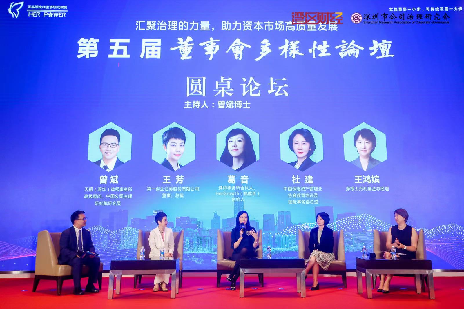 本次圓桌論壇,邀請了上市公司代表、機(jī)構(gòu)代表、學(xué)者從各自的工作經(jīng)歷或研究視角,圍繞女性董事和女性高管相關(guān)話題展開討論并闡述各自的觀點。摩根士丹利基金總經(jīng)理王鴻嬪、第一創(chuàng)業(yè)證券股份有限公司董事、總裁王芳、鼎力可持續(xù)數(shù)字科技創(chuàng)始人/CEO王德全、律師事務(wù)所合伙人、HerGrowth(她成長)創(chuàng)始人葛音、中國保險資產(chǎn)管理業(yè)協(xié)會教育培訓(xùn)及國際事務(wù)部總監(jiān)杜建等人參與了本次圓桌討論。由天冊(深圳)律師事務(wù)所高級顧問、中國公司治理研究院研究員曾斌博士主持。