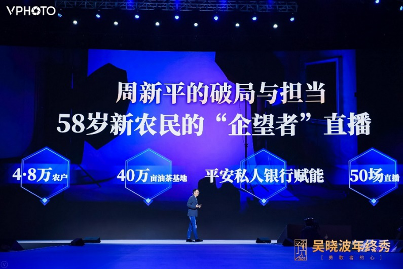 58歲的“新農(nóng)民”周新平是吳曉波故事里講述的主角之一,也是平安私人銀行企望者。2008年,他辭掉跨國公司中國區(qū)總裁,回到家鄉(xiāng)創(chuàng)辦大三湘茶油。12年間,周新平夫婦讓油茶花開至漫山遍野,40萬畝油茶基地,4.8萬戶農(nóng)戶脫貧致富,實實在在地用油茶產(chǎn)業(yè)富了一方百姓。