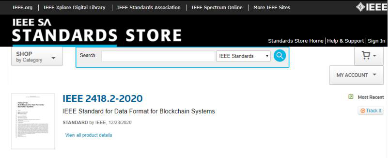 12月23日,由中國電子技術(shù)標(biāo)準(zhǔn)化研究院牽頭制定的IEEE2418.2-2020《區(qū)塊鏈系統(tǒng)的標(biāo)準(zhǔn)數(shù)據(jù)格式》(IEEE Standard for Data Format for Blockchain Systems)正式發(fā)布實施。IEEE2418.2-2020標(biāo)準(zhǔn)的后續(xù)發(fā)布、推廣等活動由IEEE計算機協(xié)會區(qū)塊鏈和分布式記賬技術(shù)委員會統(tǒng)一管理。IEEE是國際性的電子技術(shù)與信息科學(xué)工程師的協(xié)會,也是目前全球最大的非營利性專業(yè)技術(shù)學(xué)會。
