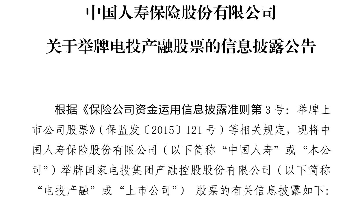 時(shí)隔兩年,中國(guó)人壽保險(xiǎn)股份有限公司(以下簡(jiǎn)稱“中國(guó)人壽”)再次舉牌上市公司。這一次的舉牌對(duì)象是國(guó)家電投集團(tuán)產(chǎn)融控股股份有限公司(證券簡(jiǎn)稱“電投產(chǎn)融”,證券代碼000958)。