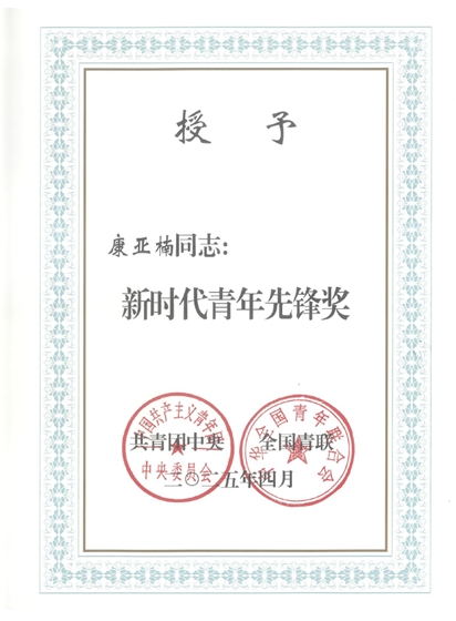 新時(shí)代青年先鋒獎(jiǎng)是共青團(tuán)中央、全國(guó)青聯(lián)授予中國(guó)優(yōu)秀青年的重要榮譽(yù),旨在表彰我國(guó)優(yōu)秀青年在推進(jìn)中國(guó)式現(xiàn)代化中的貢獻(xiàn),集中展示新時(shí)代中國(guó)青年的精神品格和價(jià)值追求,激勵(lì)引導(dǎo)全國(guó)廣大青年積極投身強(qiáng)國(guó)建設(shè)、民族復(fù)興偉業(yè),勇做中國(guó)式現(xiàn)代化建設(shè)的先鋒力量。