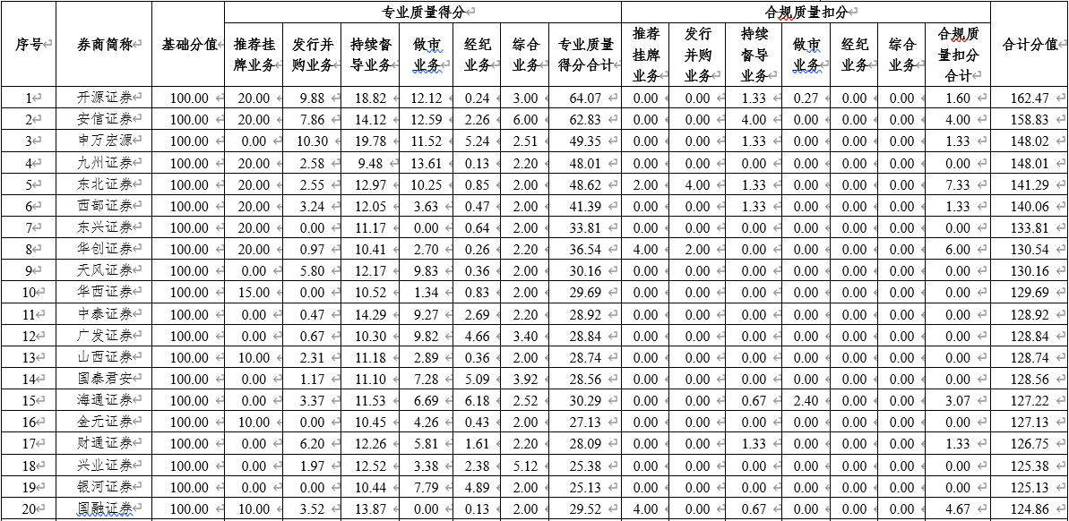 2021年第二季度主辦券商執(zhí)業(yè)質(zhì)量評價結(jié)果