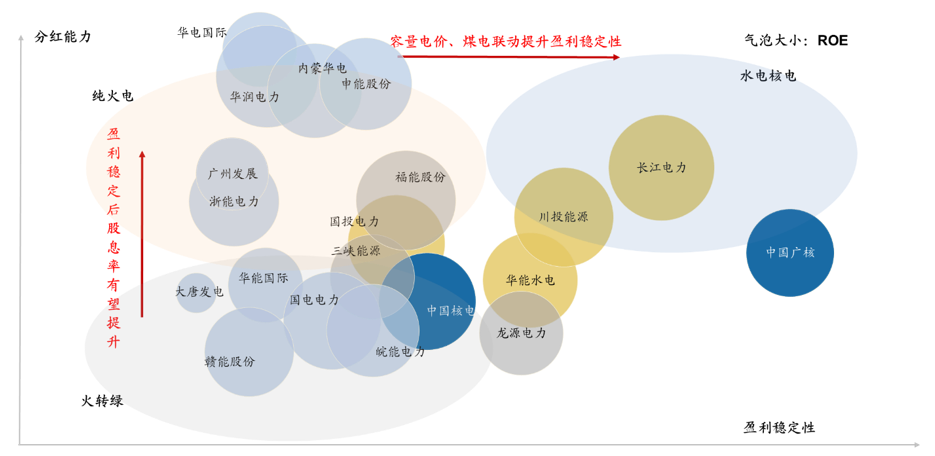 對(duì)比電力各板塊穩(wěn)定性、股息率、ROE三要素→判斷各板塊邊際變化下公用事業(yè)化加速:以各板塊穩(wěn)定性、股息率、ROE三要素對(duì)比作為線索,判斷雖然各自的公用事業(yè)化程度不同,但伴隨市場(chǎng)風(fēng)格變遷、火電業(yè)績及核電裝機(jī)兌現(xiàn),推演核電成為“類水電資產(chǎn)”、火電穩(wěn)定性提升,板塊公用事業(yè)化行情兌現(xiàn)且未來仍將持續(xù)演繹。