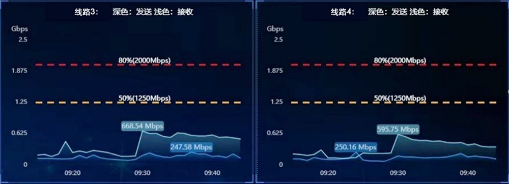 新一代骨干網(wǎng)通過SRv6和隨流檢測(cè)技術(shù),實(shí)現(xiàn)業(yè)務(wù)流量的智能調(diào)度,將骨干網(wǎng)打造成為高效負(fù)載均衡的骨干通道,徹底解決之前鏈路使用不均的問題,現(xiàn)網(wǎng)的4條不同線路之間的瞬時(shí)峰值差異從50%下降到20%以下,鏈路帶寬得到充分利用。