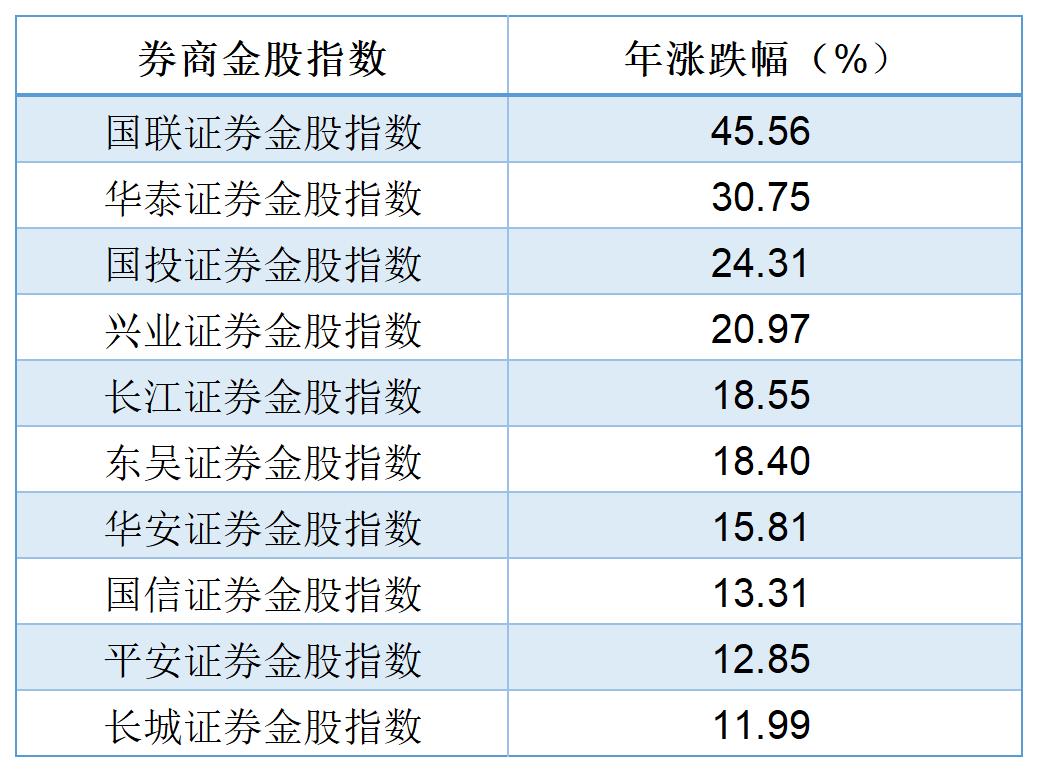 聚焦各家券商推薦金股組合的情況,2024年,有25家券商金股指數(shù)實現(xiàn)上漲,13家券商金股指數(shù)漲幅超過10%。其中,“國聯(lián)證券金股指數(shù)”表現(xiàn)較好,以45.56%的漲幅位居榜首;其次是“華泰證券金股指數(shù)”,漲幅為30.75%;“國投證券金股指數(shù)”和“興業(yè)證券金股指數(shù)”漲幅均超20%,分別為24.31%、20.97%。