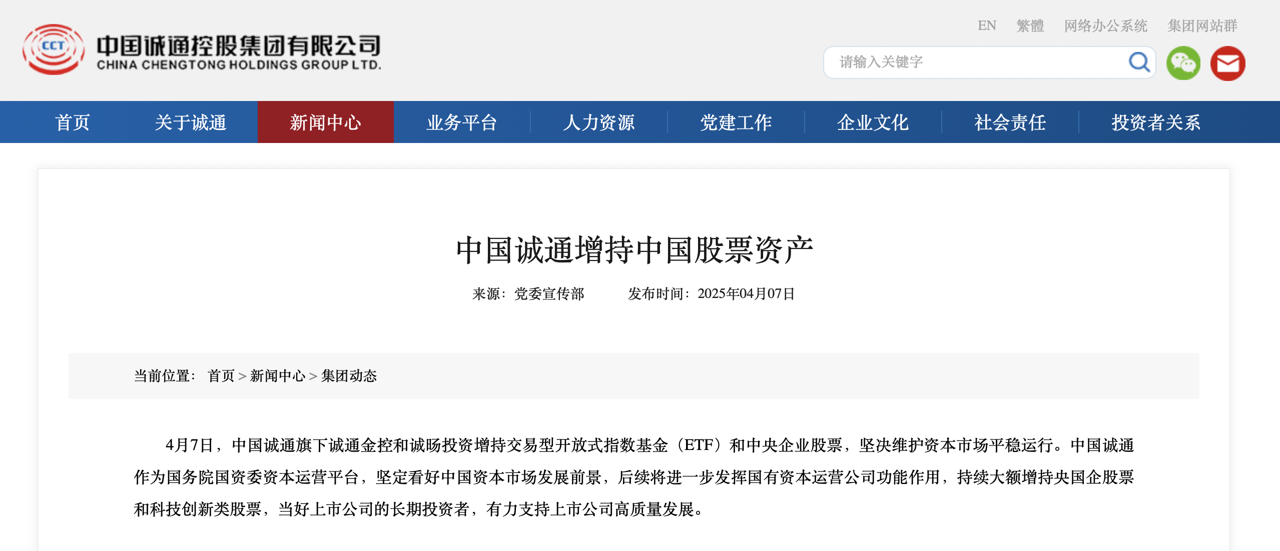 此外,4月7日至4月8日凌晨,中央?yún)R金公司、中國誠通、中國國新等相繼宣布增持!
