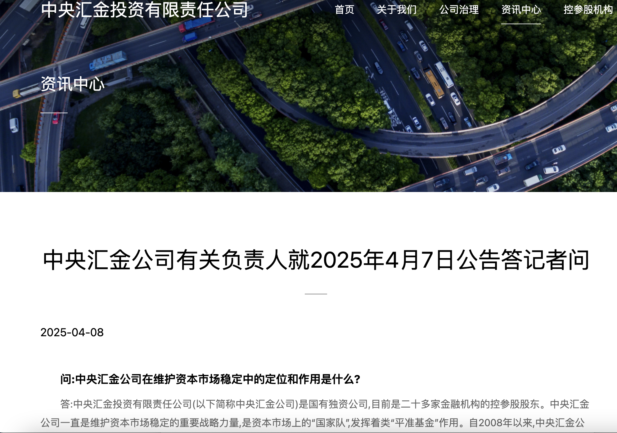 中央?yún)R金公司有關(guān)負(fù)責(zé)人就2025年4月7日公告答記者問