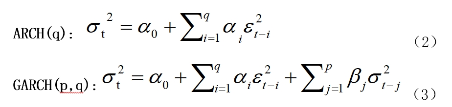 項(xiàng),能夠捕捉歷史波動(dòng)對當(dāng)前波動(dòng)的累計(jì)效應(yīng),將ARCH模型所依賴的高階殘差項(xiàng)通過歷史殘差平方的遞歸函數(shù)進(jìn)行替代,更為符合金融數(shù)據(jù)波動(dòng)的持續(xù)性特征。