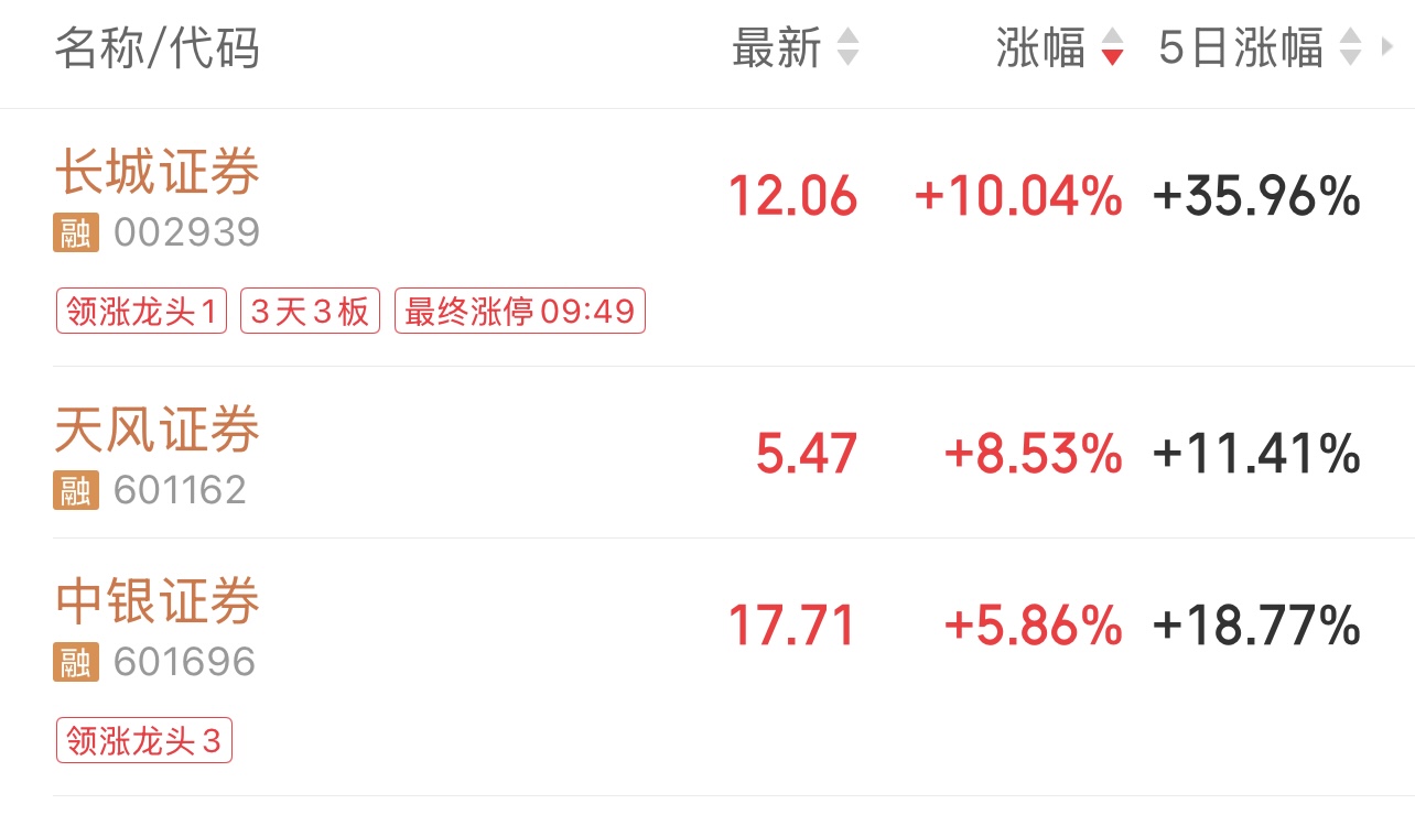 8月15日,同花順數(shù)據(jù)顯示,截至記者發(fā)稿時,證券板塊整體漲幅已超過2%。其中,長城證券表現(xiàn)搶眼,漲停并實現(xiàn)“三連板”,天風(fēng)證券、中銀證券等熱門個股漲幅也均超過5%。