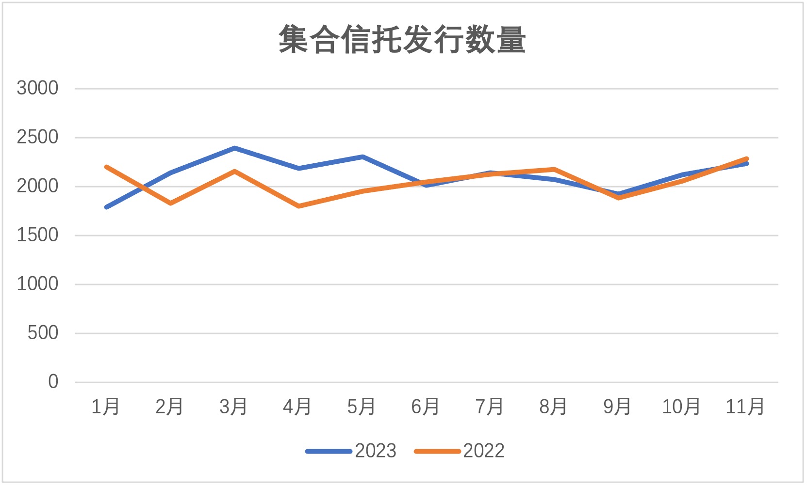 對于11月份集合信托產(chǎn)品發(fā)行數(shù)量上升,用益信托研究員帥國讓對《證券日報》記者表示,臨近年末,不少信托公司基于業(yè)績要求,加大了產(chǎn)品發(fā)行力度。另一方面,11月份的集合信托產(chǎn)品發(fā)行數(shù)量上升,部分因素與10月份實際工作日減少,基數(shù)相對較低有關(guān)。