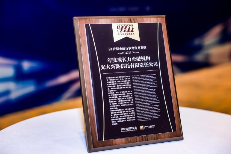 為表彰卓越金融機構,推動行業(yè)健康發(fā)展,挖掘金融機構年度優(yōu)秀樣本案例,11月9日,由《21世紀經濟報道》主辦的“第十九屆21世紀金融年會暨2024年21世紀金融競爭力優(yōu)秀案例評選活動”在北京舉行,光大興隴信托憑借自身優(yōu)秀的業(yè)務創(chuàng)新轉型能力,入選“2024年21世紀金融競爭力優(yōu)秀案例”并榮獲“2024年度成長力金融機構”獎項。