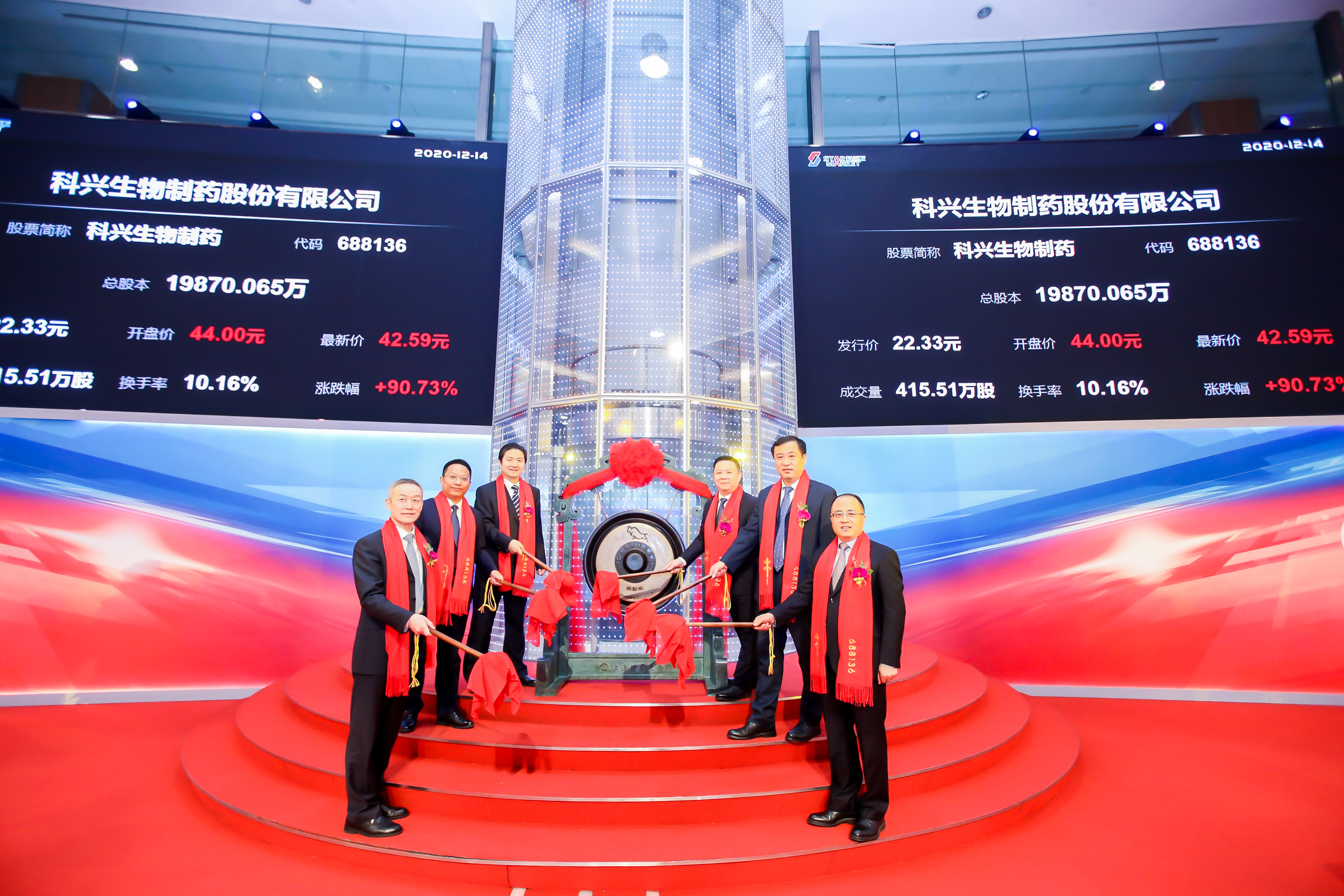 12月14日,科興制藥在上交所科創(chuàng)板掛牌上市。當(dāng)日開(kāi)盤股價(jià)即沖高至44.36元/股,較22.33元/股發(fā)行價(jià)上漲98.66%。