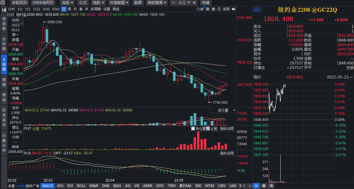 銀河期貨貴金屬研究員萬一菁認(rèn)為:“首先,目前國際地緣政治問題仍然較多,且美聯(lián)儲(chǔ)6月份和7月份加息的預(yù)期均為50個(gè)基點(diǎn),不如此前75個(gè)基點(diǎn)強(qiáng)烈,這給黃金提供了一定支撐。尤其是美元指數(shù)回落,也給黃金提供了喘息機(jī)會(huì);其次,近期出現(xiàn)猴痘確診病例也令全球避險(xiǎn)情緒回升。在多重因素疊加下,貴金屬價(jià)格觸底反彈。”