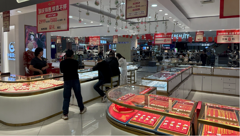 “算上活動折扣后,今天我們的金價是619元/克,國慶假期之后活動就結(jié)束了。”10月7日,在天津市的一家黃金飾品店中,銷售人員向《證券日報》記者介紹,國慶假期中來店內(nèi)購買金飾的消費者數(shù)量較多,很多都是訂婚、結(jié)婚來買金飾。同時,來進行“以舊換新”的顧客也很多。