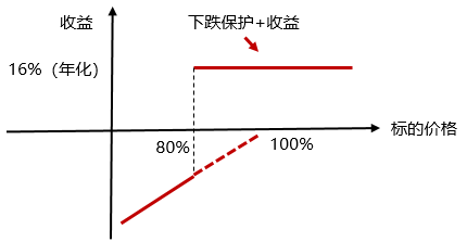 首先,我們了解一下雪球的產(chǎn)品設(shè)計。投資者買入雪球產(chǎn)品,本質(zhì)上是投資者向證券公司賣出了一個帶觸發(fā)條件的看跌期權(quán),可以簡單理解為投資者向證券公司賣了一份附生效條件的“保險”,投資者獲得的雪球產(chǎn)品收益主要來自于證券公司支付的“保險費”。我們以前面的產(chǎn)品為例,中證500指數(shù)只要沒有跌到80%,這份保險就不生效,投資者不僅可以獲得保險費(16%年化收益),也不用向證券公司理賠,即使指數(shù)下跌也不會發(fā)生本金虧損;當(dāng)中證500指數(shù)跌破80%,且到期價格沒有回升至100%時,投資者需要向證券公司進(jìn)行理賠,理賠金額為中證500指數(shù)下跌的實際跌幅,這時投資者會發(fā)生本金虧損。總結(jié)來說,這款雪球產(chǎn)品在中證500指數(shù)下跌20%的區(qū)間為投資者提供了本金保護(hù),并提供較高的收益;指數(shù)跌破20%,投資者就需承擔(dān)中證500指數(shù)下跌的風(fēng)險。