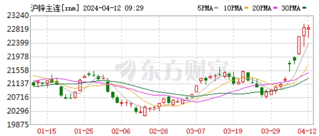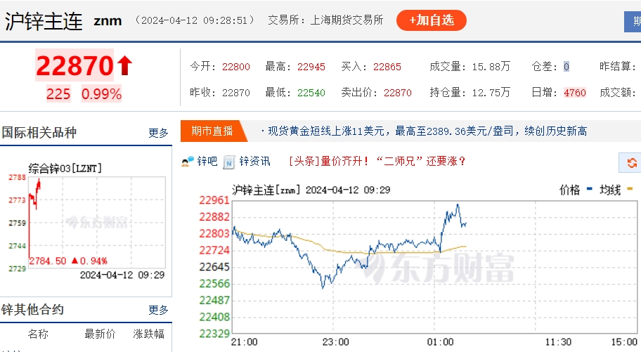 早盤國內(nèi)鋅價(jià)接近23000點(diǎn)大關(guān)(供圖:東方財(cái)富)