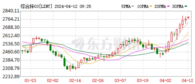 東方財(cái)富Choice終端顯示,北京時(shí)間4月12日8時(shí)左右,倫敦金屬交易所掛牌交易的綜合鋅03期貨合約(代碼:LZNT)低開高走,報(bào)價(jià)2770.50點(diǎn),接近2800點(diǎn)大關(guān)。