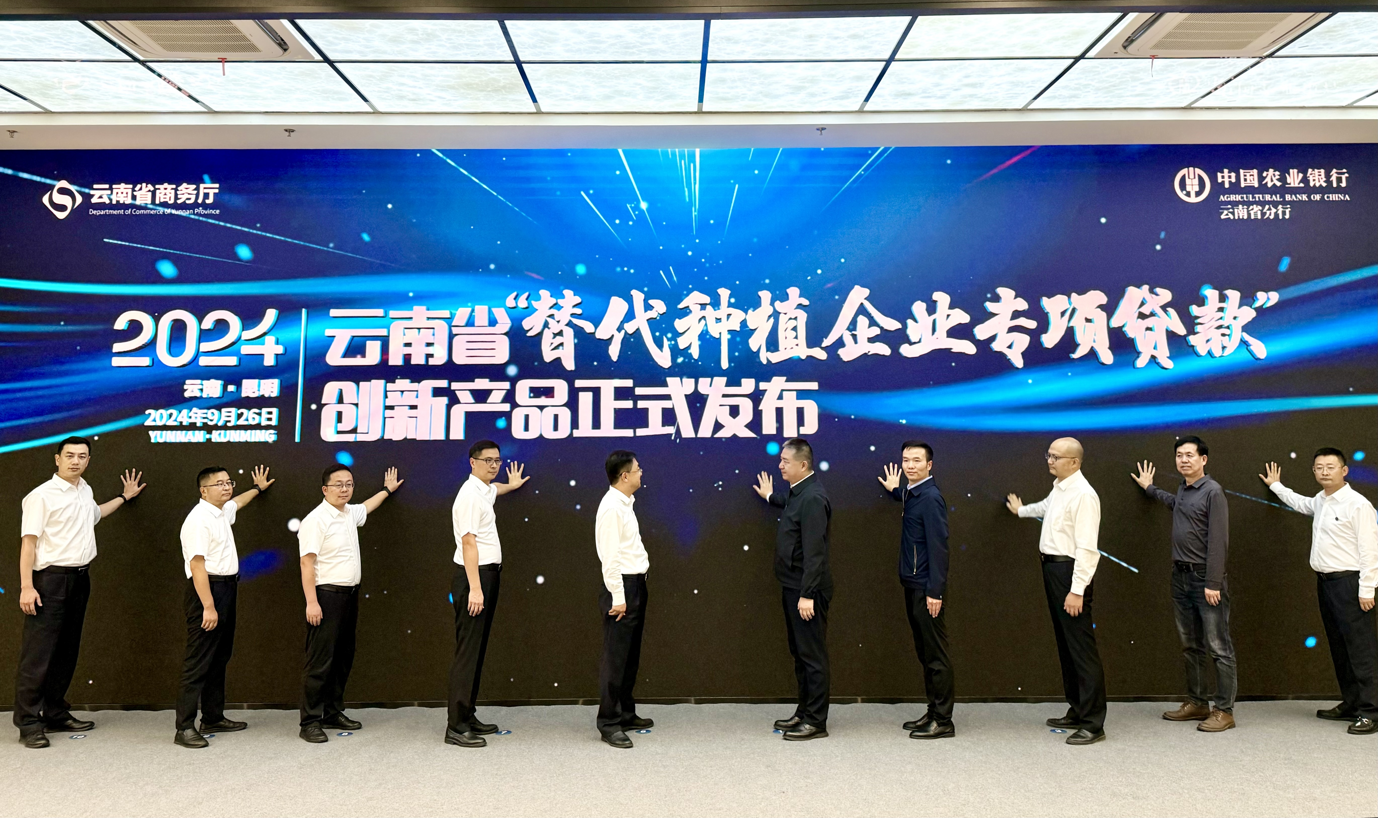 9月26日,云南省商務廳聯(lián)合中國農業(yè)銀行云南省分行在昆明舉辦云南省“替代種植企業(yè)專項貸”創(chuàng)新產品發(fā)布暨貸款簽約儀式。