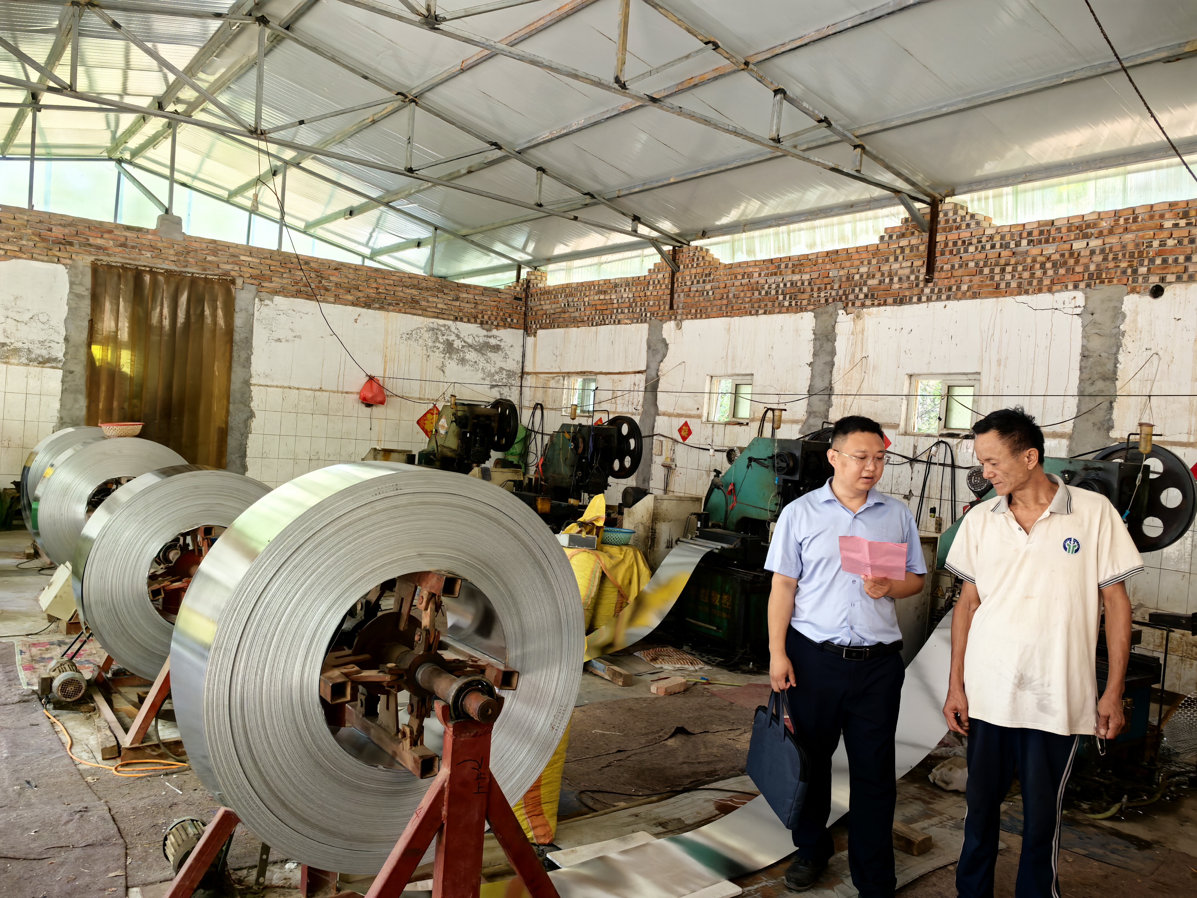 潤(rùn)昌農(nóng)商銀行客戶經(jīng)理實(shí)地走訪螺帽生產(chǎn)廠,了解生產(chǎn)經(jīng)營(yíng)情況 潤(rùn)昌農(nóng)商銀行供圖