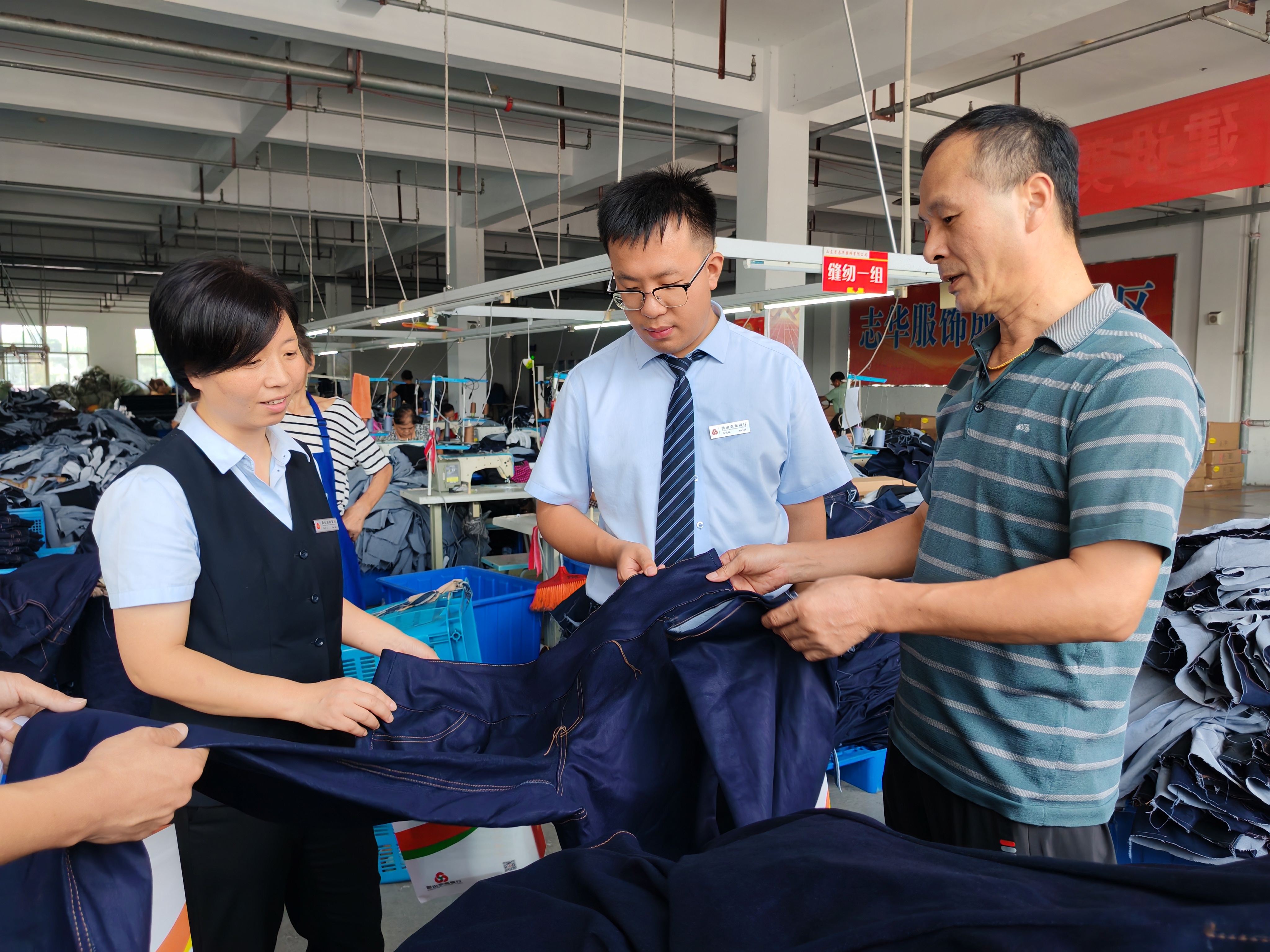 微山農(nóng)商銀行客戶經(jīng)理實地走訪服裝生產(chǎn)企業(yè)了解其生產(chǎn)經(jīng)營情況 微山農(nóng)商銀行供圖
