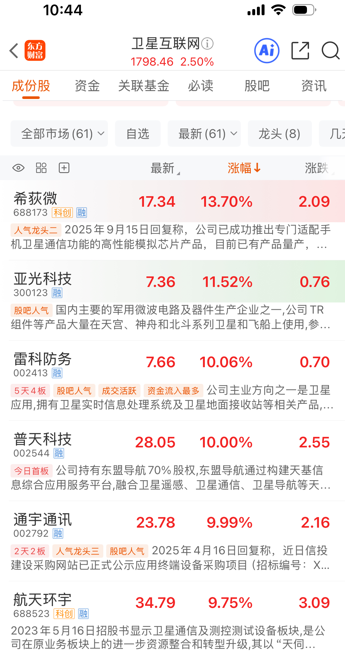 個(gè)股方面,乾照光電、雷科防務(wù)、普天科技、通宇通訊、順灝股份等個(gè)股紛紛漲停,航天環(huán)宇、中科星圖、星圖測(cè)控、航天宏圖、星網(wǎng)宇達(dá)等個(gè)股紛紛跟漲。