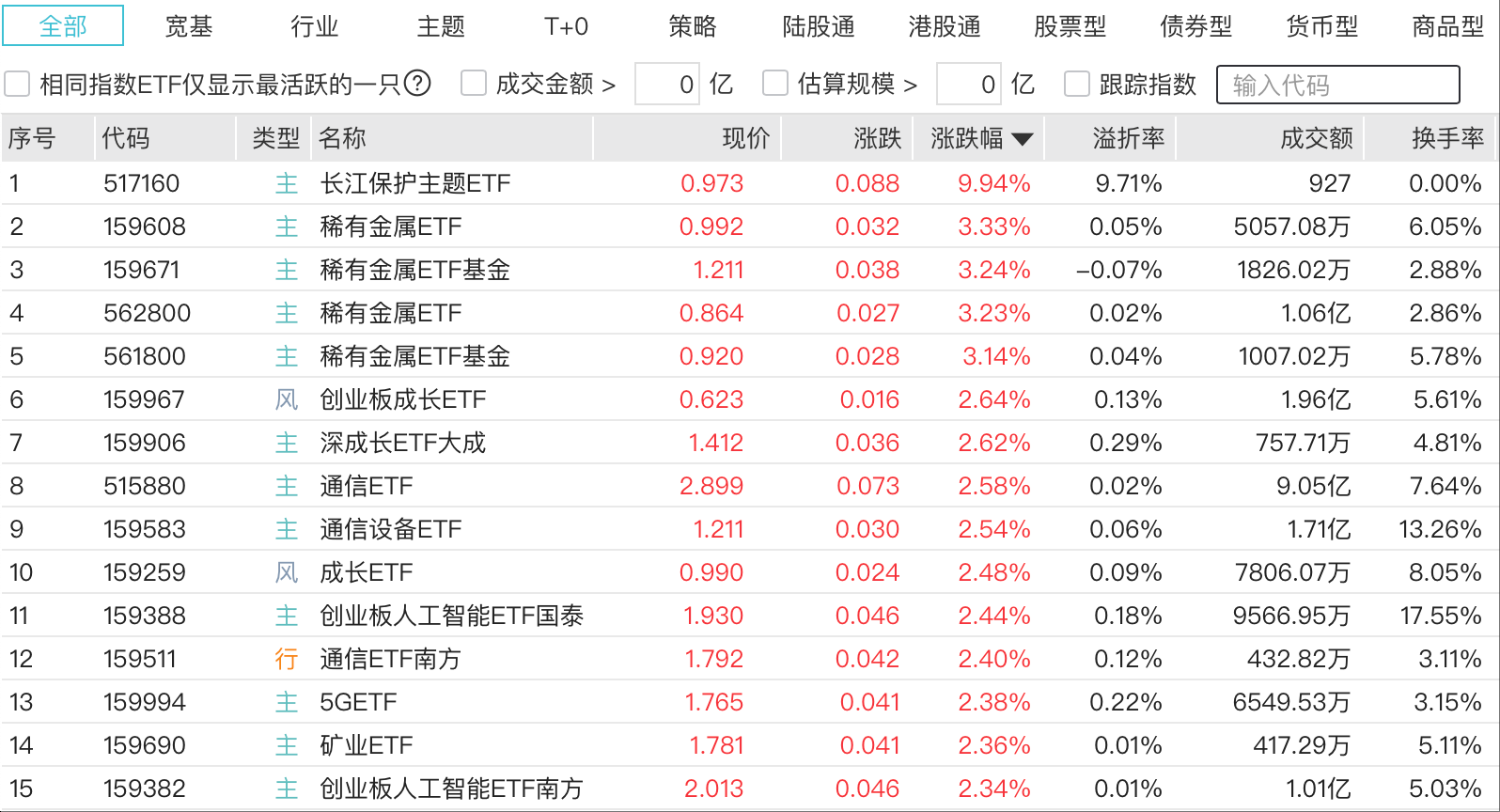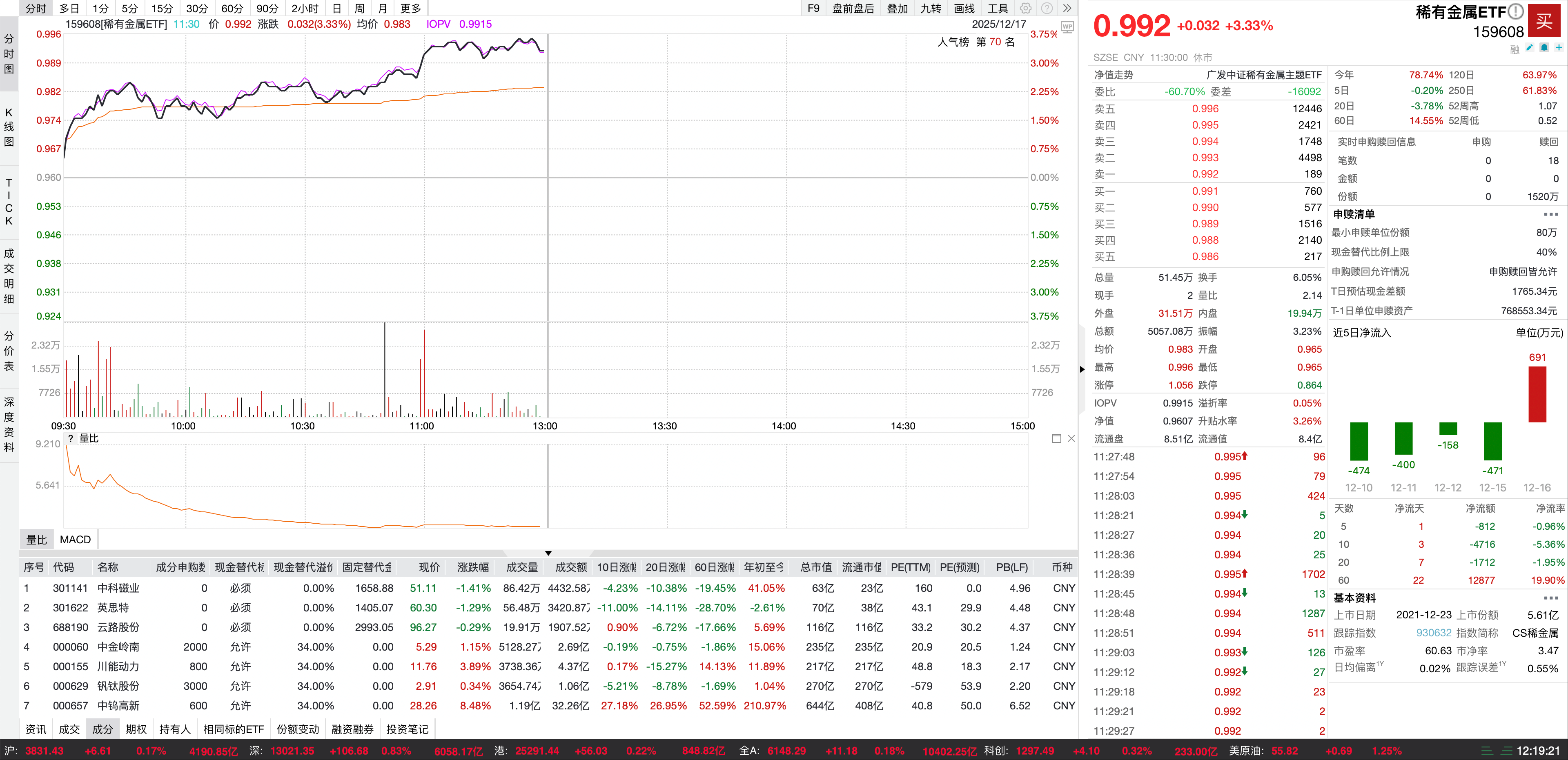 截至12月17日午間收盤,A股市場稀有金屬板塊表現(xiàn)搶眼,多只稀有金屬ETF漲幅居前。
