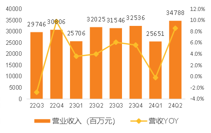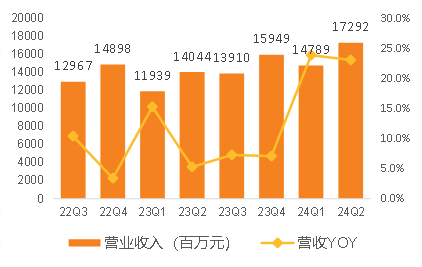 2022年11月30日ChatGPT橫空出世,全球科技產(chǎn)業(yè)新一輪大變革拉開序幕,通信行業(yè)作為基礎(chǔ)設(shè)施板塊,隨著2023年底全球AI軍備競(jìng)賽的展開,經(jīng)營(yíng)形勢(shì)全面向好。從營(yíng)業(yè)收入看,通信設(shè)備2024Q1和Q2營(yíng)收分別同比增長(zhǎng)5.9%和8.7%,行業(yè)結(jié)束了10個(gè)季度增速下降趨勢(shì)和2023Q3的負(fù)增長(zhǎng),2023Q4開始反轉(zhuǎn)恢復(fù)增長(zhǎng)3%,并且2024年Q1和Q2加速增長(zhǎng),反映行業(yè)新舊動(dòng)能切換——AI成為行業(yè)增長(zhǎng)新引擎,預(yù)計(jì)趨勢(shì)有望延續(xù)。